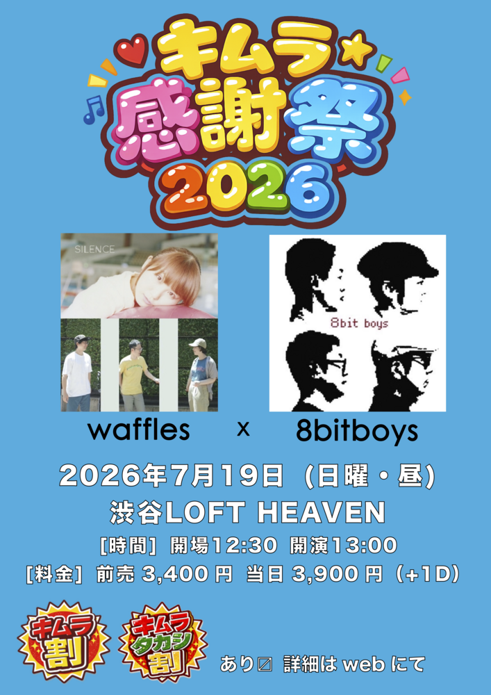 夏ライブのお知らせ/waffles x 8bitboys 『キムラ感謝祭2026』